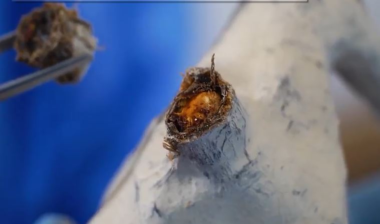 Premièrement, jamais il ne serait venu à l’idée de véritables scientifiques de manipuler ces objets comme ces gens le font. En les trimballant de ci de là, les retournant, en approchant leur bouche, leur nez et sans se couvrir les cheveux. Des analyses ADN et C14 qui pourraient donc être biaisées et des champignons qui vont se développer sur les tissus organiques (à condition qu’il y en ait) et les dégrader. Bravo.